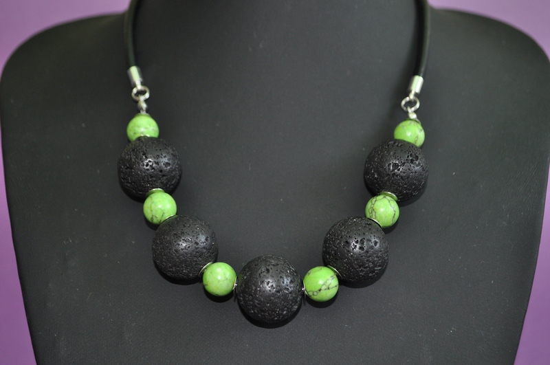 Korale turkus i lawa wulkaniczna na rzemieniu.