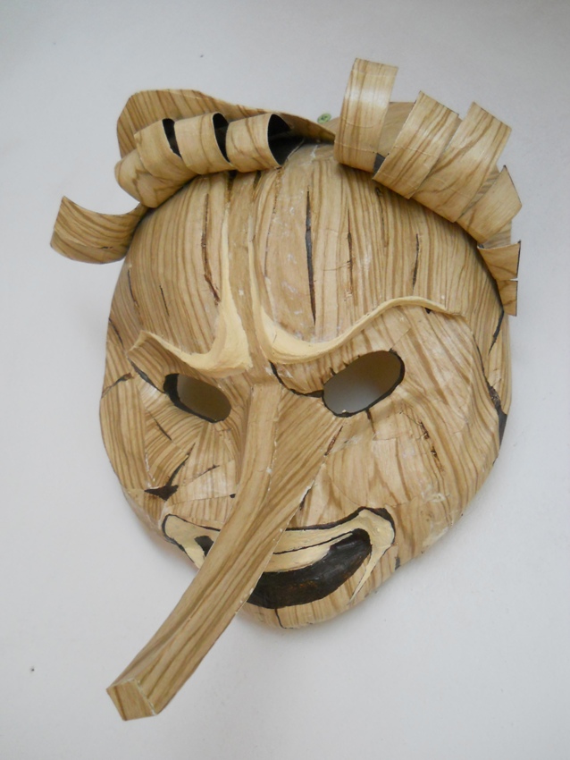 Maska "PINOKIO" autorskiego projektu, wykonana z papieru i ręcznie malowana, inspirowana maskami weneckimi i baśnią dla dzieci pt. "Pinokio". Maska wykonana tylko w jednym egzemplarzu.